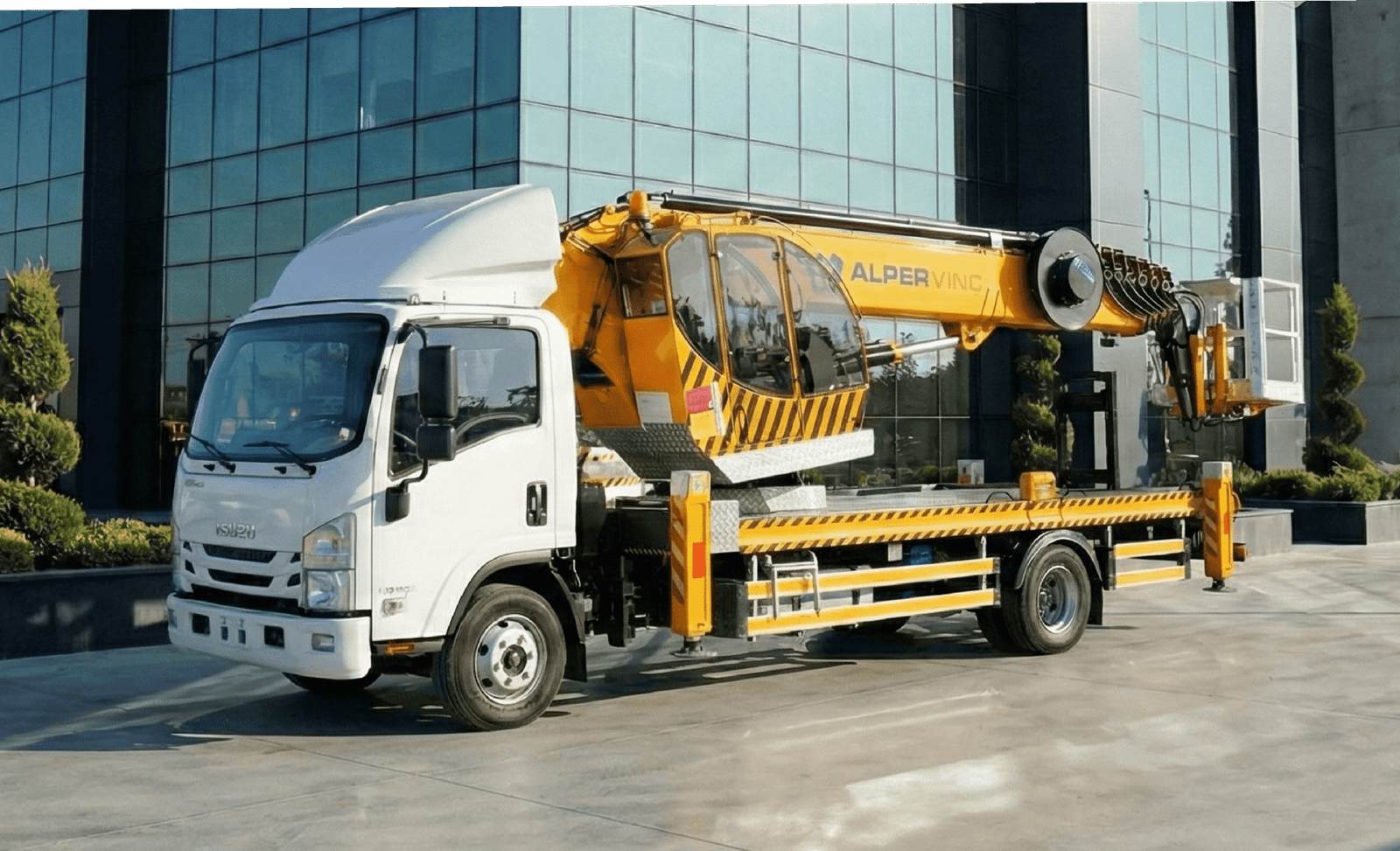 Dış cephe, tabela ve peyzaj işleri için; yüksek erişim ve hızlı kurulum sağlayan araç üstü sepetli platform çözümleri